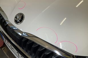 Dålig linjepassning på stötfångare bak. Dekorlist höger fram skadad. Fåtal stenskott, buckla, repor och rostangrepp